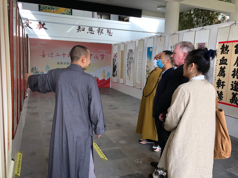 10月14日上午,我院举办“喜迎二十大 共圆中国梦”师生书画展,市民宗局副局长赵立志,能修院长参加活动,常务副院长宗金林主持活动。