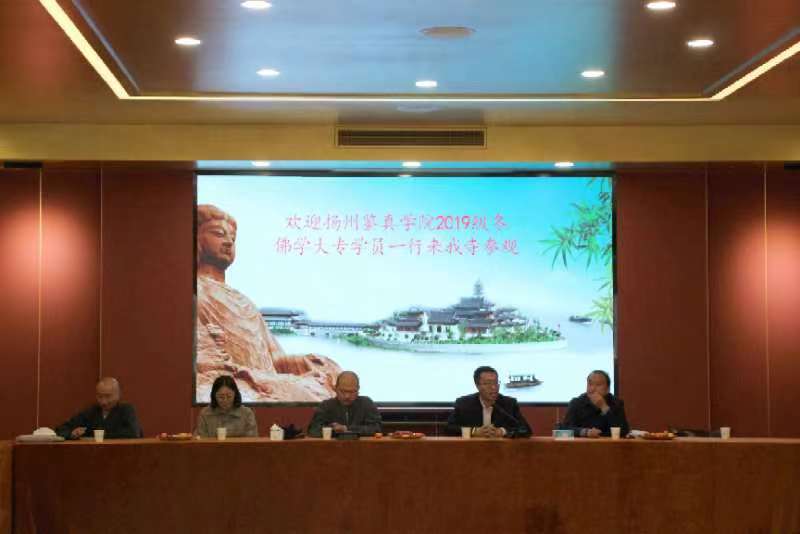 在如皋法华寺,参访团受到南通佛协副会长、法华寺方丈照空法师的热情接待。照空法师带领参访团参观了寺院,并以寺院管理为题在寺院讲堂为学员奉上精彩的现场授课,详细介绍了寺院的安全管理、档案管理、学修管理、文化传播等多方面的内容,并勉励毕业班学员在未来修行路上常念四恩,和合精进,服务社会。照空法师表示要与我院加强交流,为佛教人才的培养共同努力。