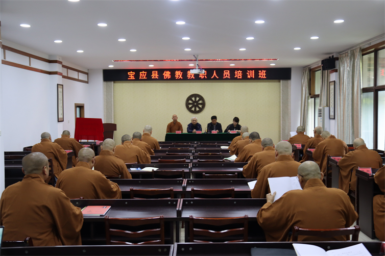 为更好贯彻落实全省、全市宗教会议精神,始终坚持我国佛教中国化方向,全面解读加强佛教场所规范化建设及场所管理的重要性,依据新时代佛教工作特点,强化佛教教职人员能力作风建设和宗教政策法规学习,促进佛教健康发展。由宝应县民宗局、宝应县社会主义学校主办,宝应县第一期佛教教职人员培训班于4月24日至4月25日在鉴真佛教学院成功举办。县委统战部副部长、民宗局局长卞鹤春出席活动。