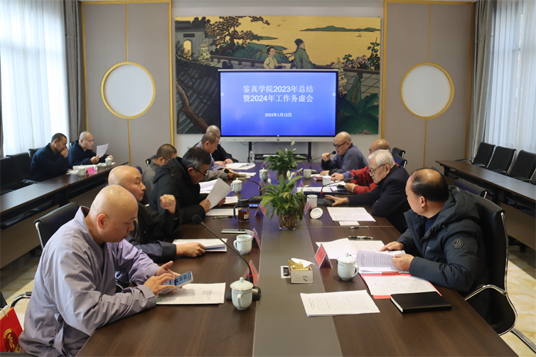 能修院长在会议结束时作开示,赞同学院2023年工作总结,对取得的成绩表示赞叹!希望大家在2024年以院为家,团结一致,凝心聚力,推动学院各项工作更上一层楼。