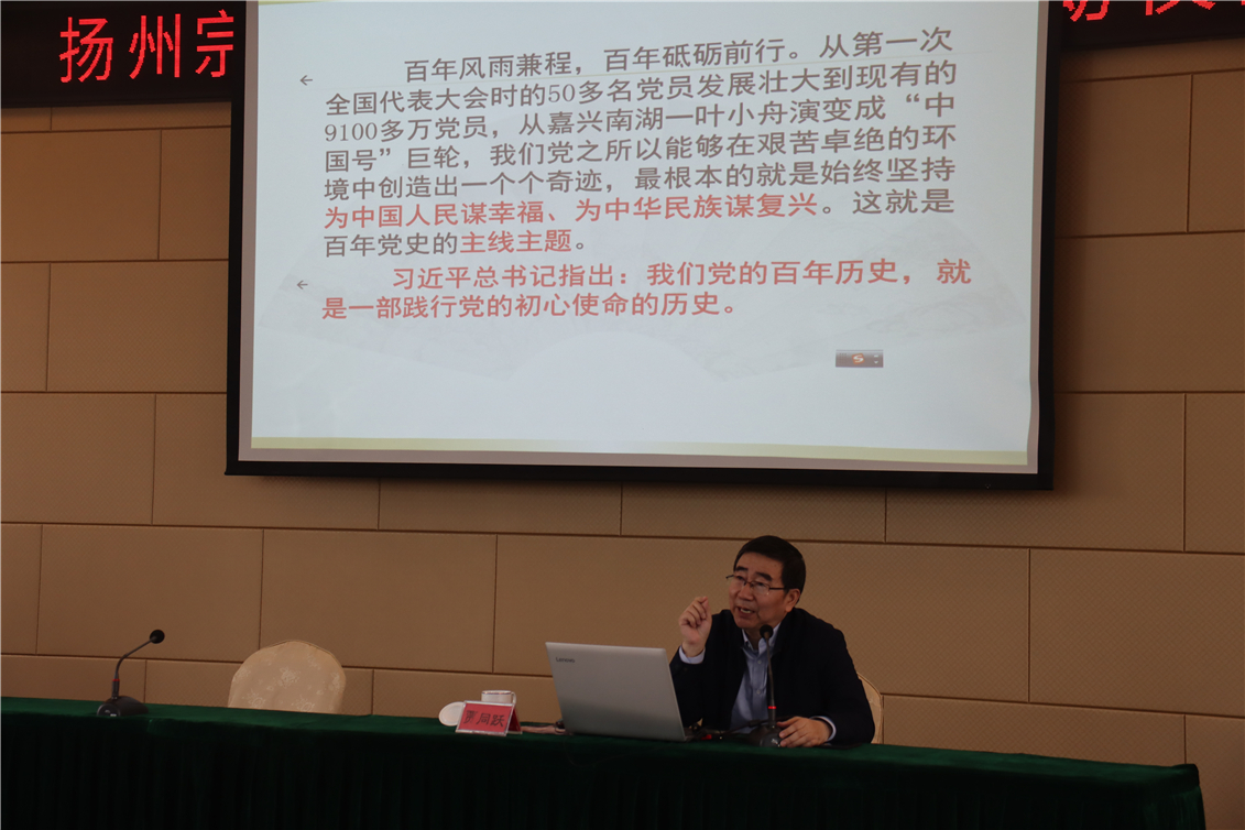 为纪念中国共产党诞辰100周年,深入开展新时代爱国主义教育,4月16日下午,我院举行“四史”学习首场报告会,特邀扬州市委党校原副校长贾同跃教授作《重温百年党史,坚定理想信念》的讲座。通过学习大家深刻认识到,没有中国共产党,就没有新中国;没有共产党,就没有今天各宗教的健康传承和广大信教群众的幸福生活。6月前,我院还将邀请专家作《初心使命,百年大党砥砺前行的根本...