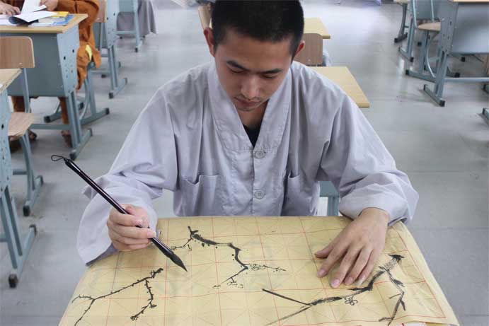 又一个新学期,又一批新生入校,为丰富学僧课余生活,学院为他们开设才艺先修课:古筝、古琴、书法、国画、武术太极。