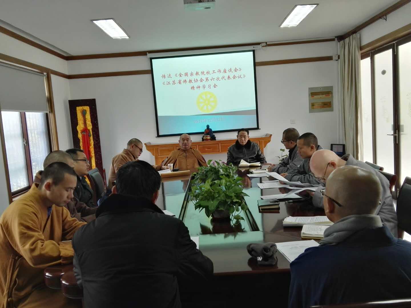 2017年12月12日12时许,我院举行传达《全国宗教院校工作座谈会》、《江苏省佛教协会第六次代表会议》精神专题学习会。分别学习了上述两次重要会议精神,并结合学院今后工作进行了讨论。能修大和尚出席学习会并开示。...