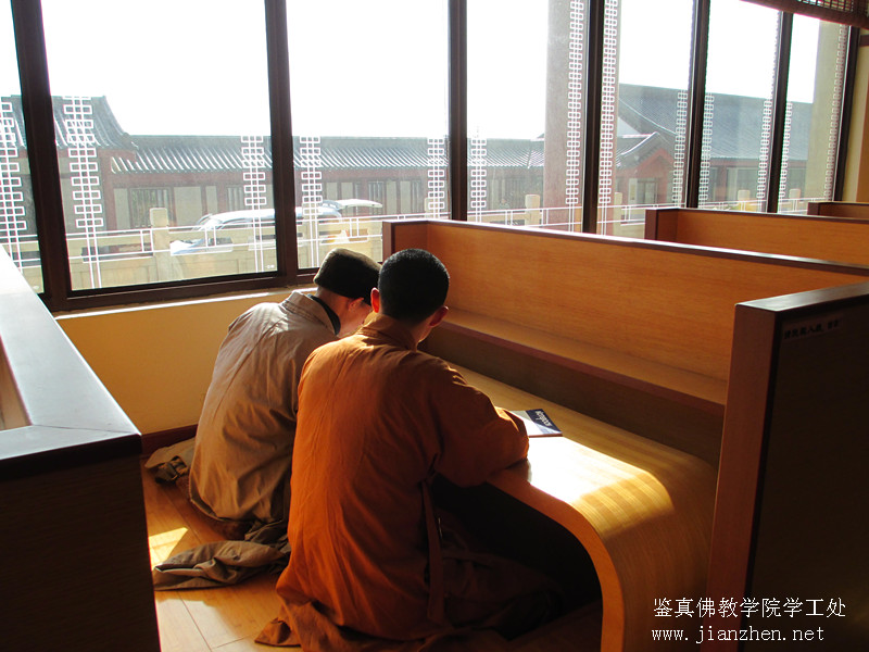 本四班在图书馆写毕业论文,明空法师全程指导