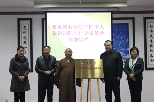 3月7日下午,“中国华侨国际文化交流基地授牌仪式在我院举行。中国侨联对外联络部刘奇部长一行在省侨联和市侨联领导陪同下来我院为基地揭牌。能修大和尚、蒋寿建副院长及学院部分法师教师出席揭牌仪式。蒋寿建副院长汇报了鉴真学院以佛教文化和鉴真文化为依托,弘扬佛教正能量,积极开展对外友好交往,服务广大华人华侨,以及我院加强基地建设的有关情况。刘奇部长在讲话中指出,中国华...