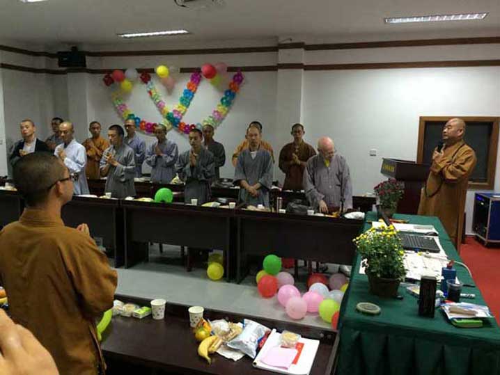 为进一步提高佛教场所管理水平,提升佛教教职人员的整体素质,在已成功举办两期(2013年、2014年)培训班的基础上,2015年9月17日—20日,我院承办了扬州市佛教协会举办的第三期佛教人员轮训班,来自全市各县(市、区)的24名寺院骨干人员参加培训。本期培训班重点进行佛教知识、宗教政策法规、佛教仪规学习,并专门安排了到扬州高旻寺坐禅参学的实践活动。市佛教协会...