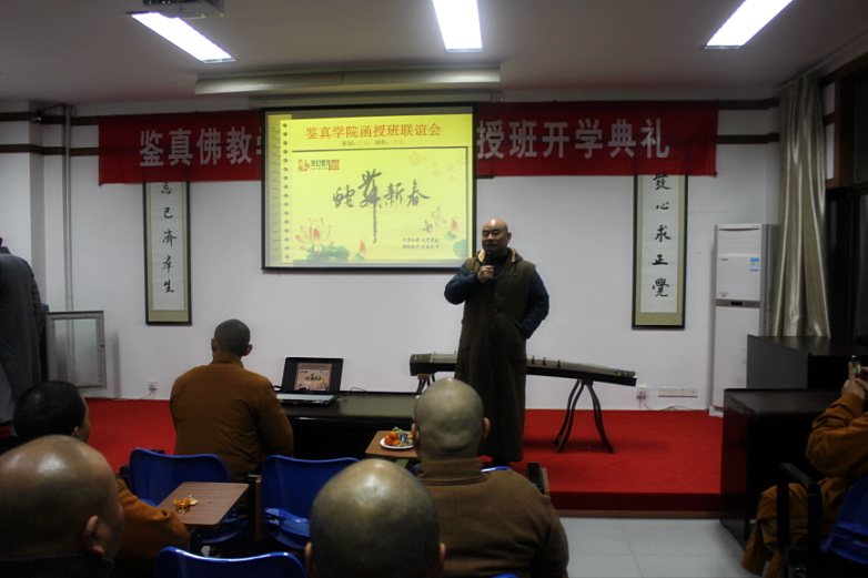 2013年1月20日晚六时,在我院多媒体室隆重举行佛学大专函授班开学典礼。常务院长能修大和尚为全体学员做精彩开示。能修院长在开学典礼上致词