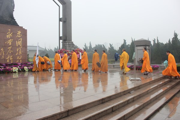 2012年3月30日上午9:30,大明寺常住和鉴真学院全体师生冒雨前往烈士陵园扫墓,对学僧进行爱国主义教育。参加祭扫活动的还有天主教、基督教、伊斯兰教、道教等其他宗教的朋友。鉴真学院学僧在前往烈士陵园的路上学僧敬献挽联向革命烈士致默哀扬州宗教局郑副局长讲话鉴真学院学僧献花...