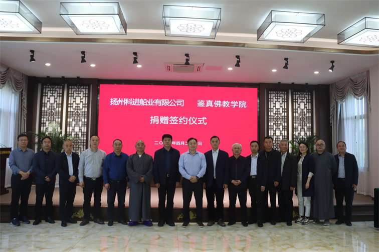 春意盎然,万物复苏,春光迤逦喜庆相随。2024年4月26日下午2:30,鉴真学院佛光普照、法喜充满!扬州科进船业有限公司向鉴真学院捐赠签约仪式在法雨讲堂举行。扬州市委统战部副部长、市民宗局长徐永泰,江都区委常委、统战部长张旭,扬州科进船业有限公司董事长谢传永,江苏省佛教协会副会长、鉴真学院院长能修大和尚等领导嘉宾出席签约仪式。常务副院长宗金林主持仪式。 ...