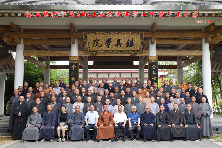 6月14日上午,鉴真学院佛光普照,法喜充满!在嘹亮的国歌声中,我院2024届本科生毕业典礼拉开帷幕。扬州市民宗局副局长赵立志,学院院长能修,常务副院长宗金林,副院长仁如法师、副院长宋华忠及全体教职工和本科毕业生出席典礼。 今年6月,我院共有94名学员经辛苦学修,完成本科学业圆满毕业。毕业典礼上,教师代表妙净法师和本科毕业生代表妙隆法师、庚戒法师分别作了...